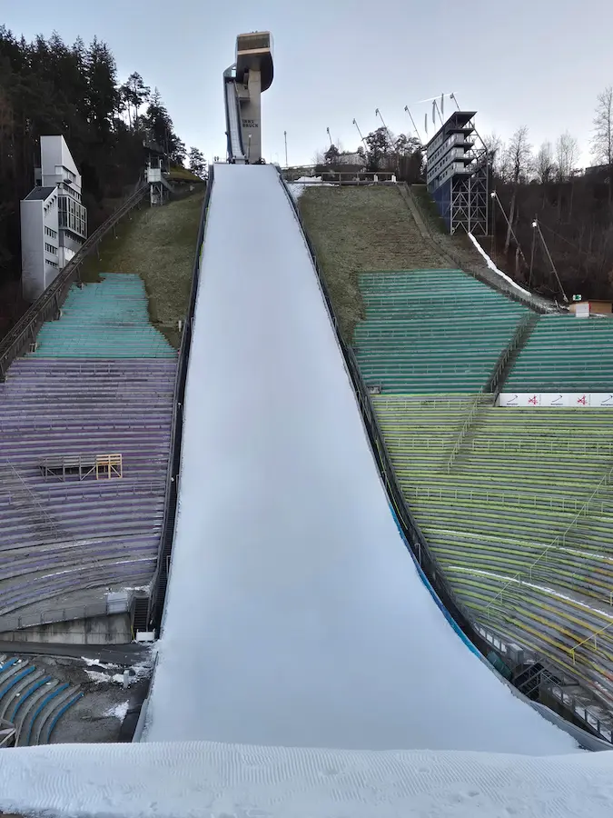 Wie ooit in Innsbruck is geweest of over de Brenner Autobahn bij Innsbruck is gereden, heeft hem gezien: de springschans op de Bergisel. De betonnen liftschacht op de berg en de schans die als een soort metalen ‘swoosh’ overgaat in het restaurant Bergisel Sky op de top vormen een niet te missen silhouet aan de zuidkant van de stad. Ook ’s avonds is de schans zichtbaar: de metalen bekleding is verlicht, en elke tien minuten wisselt de kleur. Er kunnen ook afbeeldingen en vlaggen op worden geprojecteerd.